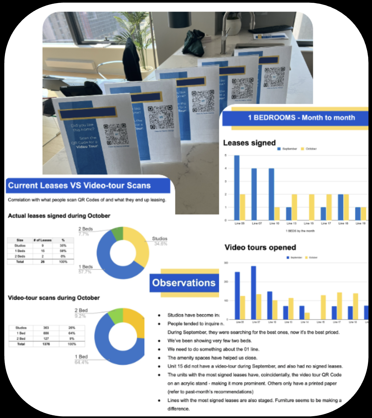A QR CODE for each apartment links direct to photos, video tours.